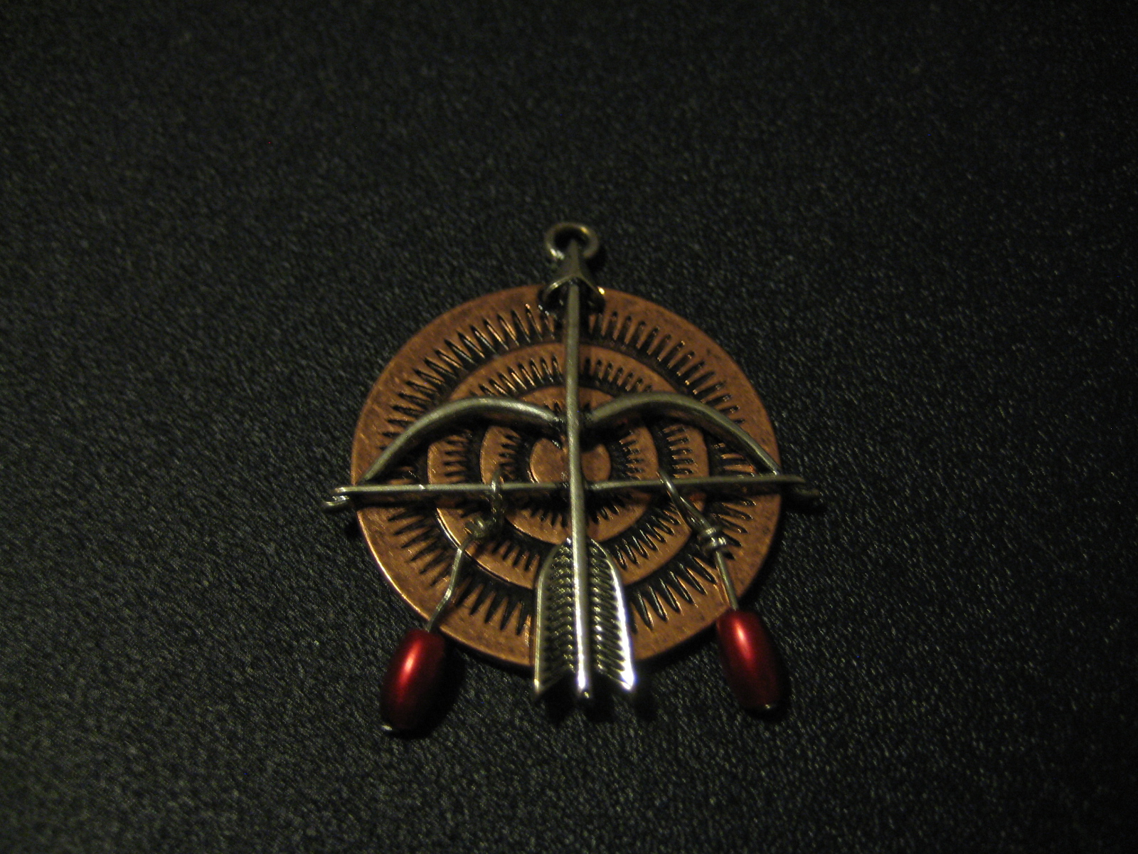 For this, we had flu flu arrows.  The cable pull was staked out and a line assistant would reset the pin, and when the archer was ready, pull the cord to launch the foam disks straight up a good 15 yards.  We had very few hits, but a lot of fun with this one.