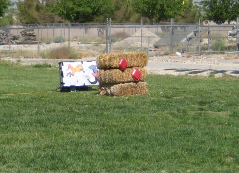 A foam backed target on a mower deck, the objective was to hit the fox, but not the hounds chasing it. This was a timed shoot on a pulley and line, archery could shoot as long as it was visible between two bales, about 25 seconds.